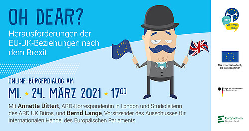 Bringen Sie Ihre Anliegen und Fragen ein bei unserem Online-Bürgerdialog „Oh Dear? Herausforderungen der EU-UK-Beziehungen nach dem Brexit“ und treten Sie in den virtuellen Dialog mit Annette Dittert, ARD-Korrespondentin in London und Studioleiterin des ARD UK Büros, und dem Europaabgeordneten Bernd Lange, Vorsitzender des Ausschusses für internationalen Handel des Europäischen Parlaments.   » weiterlesen