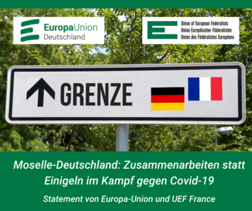 Die Union des Fédéralistes Européens Frankreich und die Europa-Union Deutschland verurteilen die einseitige Einführung von Kontrollen bei Reisen zwischen dem französischen Departement Moselle und Deutschland. Diese Maßnahmen sind weder effektiv noch stehen sie im Einklang mit dem Grundrecht der Bürgerinnen und Bürger, zwischen den EU-Mitgliedstaaten zu reisen. » weiterlesen
