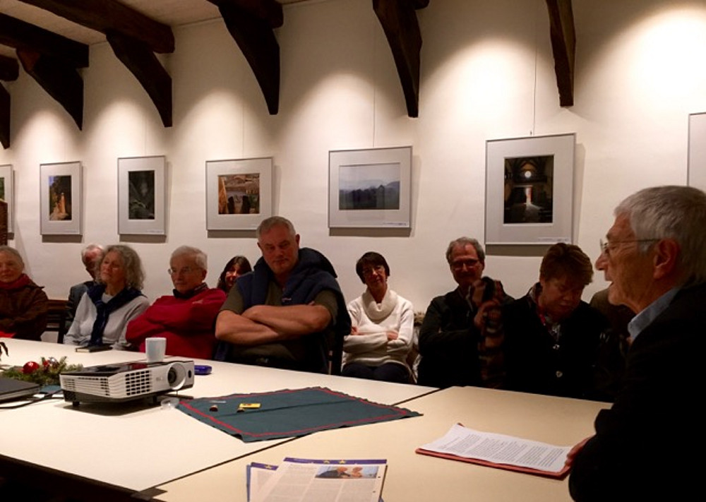 „Ach Europa“ – diesen Stoßseufzer griff dann der Referent des Abends, Hermann Kuhn, Bremer Landesvorsitzender der überparteilichen Europa-Union Deutschland (EUD) auf und präsentierte gleich eine Vielzahl von Argumenten, die die Lebendigkeit der europäischen Idee deutlich machten. „Europa ist nicht gescheitert - im Gegenteil!“, und zählte eine Vielzahl von erfolgreichen Projekten auf, die für uns heute bereits selbstverständlich sind: grenzenloses Reisen, offene, für jede Nationalität zugängliche Arbeitsmärkte, Freizügigkeit, einheitliche Währung, um nur einige hervorzuheben. Allerdings ist der alte Kontinent etwas müde geworden und sucht nach neuen Impulsen für die nächsten Schritte: „Vergessen wir nicht, dass unser heutiges Europa erst vor rund 70 Jahren erste, konkrete Formen angenommen hat. Zeitgleich wurde in Syke die Europa-Union Deutschland gegründet, eine überparteiliche Bürgerrechts-Bewegung. „Im nächsten Jahr feiern wir einen runden Geburtstag“, sagte Kuhn. Europa ist ein demokratischer Prozess, der von und mit Kompromissen lebt. Ein Europa nach eigenen Vorstellungen kann es nicht geben, Kompromisse sind die Regel. Kein Land wird ausschließlich „seine“ Ideen durchsetzen können. Deutschland muss sich seiner besonderen Verantwortung in Europa bewusst sein, denn unser gemeinsames Ziel ist ein „europäisches Deutschland“ und nicht ein „deutsches Europa“. Aussagen wie „in Europa wird wieder deutsch gesprochen“ sind hier wenig hilfreich. Stattdessen ist politisches Fingerspitzengefühl das Gebot der Stunde.