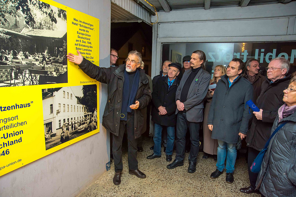 Am 9. Dezember feierte die überparteiliche Europa-Union Deutschland ihr 70-jähriges Jubiläum im niedersächsischen Syke. Aus dem ganzen Bundesgebiet waren Mitglieder und Freunde der Europa-Union angereist, um die Erfolgsgeschichte zu feiern, die dort 1946 ihren Anfang nahm. Festredner des Abends war der Ehrenpräsident der Europa-Union, Europaparlamentarier Elmar Brok. Schon am Nachmittag präsentierte der örtliche Kreisvorsitzender Gerhard Thiel die neue Gedenktafel am historischen Ort der Gründung, dem früheren Hotel „Schützenhaus“.