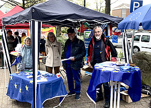 Endlich wieder diskutieren und informieren vor Ort - nach 2 Jahren waren wir wieder mit dabei - hier unser Infostand bei der Maikundgebung des DGB am 1.5.22 in Barnstorf