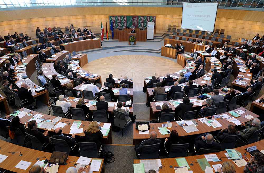 Der 58. Bundeskongress der Europa-Union Deutschland war am 27. und 28. Oktober zu Gast im Landtag NRW in Düsseldorf und tagte im frisch renovierten Plenarsaal. 300 Delegierte und Gäste aus dem gesamten Bundesgebiet und dem Ausland trafen im Landtag auf prominente Redner, u.a. Europaparlamentspräsident Martin Schulz und die NRW-Europaministerin Angelica Schwall-Düren, informierten sich über aktuelle Europapolitik und diskutierten über ein neues Grundsatzprogramm der Europa-Union.