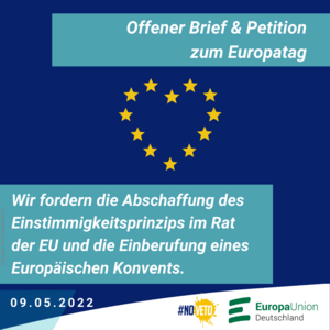 Petition zum Europatag für die Abschaffung des Einstimmigkeitsprinzips in der EU und die Einberufung eines Europäischen Konvents