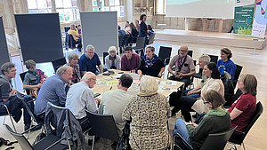 Zum Abschluss stellten die Tischmoderatorinnen und -moderatorine die Ergebnisse der Diskussionsrunden an ihren Tischen kurz vor und ließen die anderen Teilnehmenden so an den Gesprächen teilhaben.