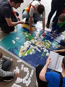 Europa-Union und JEF boten zudem im Theater Erfurt einen Aktionsstand mit Spiel, Spaß und Gesprächen zu Europa an. Viele Teilnehmende des Katholikentages nutzen die Gelegenheit und schauten beim Stand vorbei, informierten sich zu Europa, rätselten über die Flaggen der EU-Länder und bedienten sich beim Infomaterial.